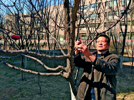 春天到了,毛如善又开始修剪树枝。 本报记者 许建立 摄