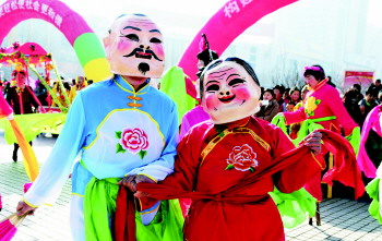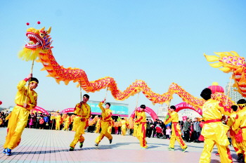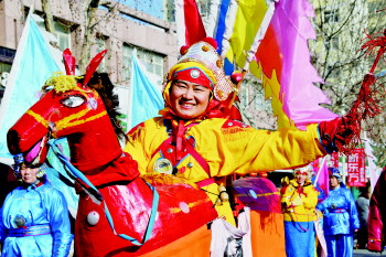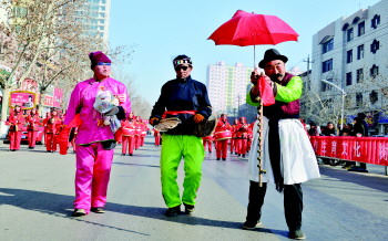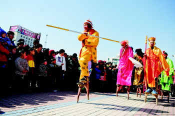 元宵节来了,在聊城各个县市区的街道上,人们穿上节日的盛装、敲起锣鼓、扭起秧歌、赶着“毛驴”、“骑”着竹马、挥动着彩绸花扇、演绎着传统的文化,欢度新春喜迎元宵佳节,展现人们的幸福生活。在聊城城区人民广场,“民俗闹元宵”文艺汇演活动也火爆举行,20多个乡镇村庄的民间艺人带来了踩高跷、舞龙、划旱船等民俗表演,欢欢喜喜闹元宵。