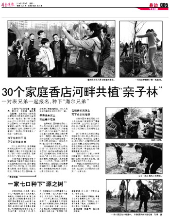▲去年,本报报道30个亲子家庭在香店河公园种下小树。