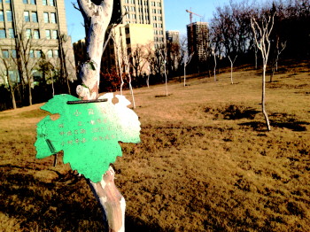 ◤2013年亲子家庭在银河公园种下的小树茁壮成长。 本报记者 刘涛 摄