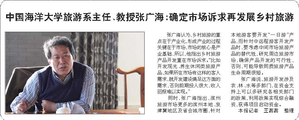 中国海洋大学旅游系主任、教授张广海:确定市场诉求再发展乡村旅游