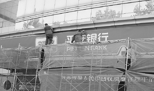 平安银行一营业点正在装修。5日的政府工作报告提出要深化国企国资改革。(资料片) 本报记者 周青先 摄