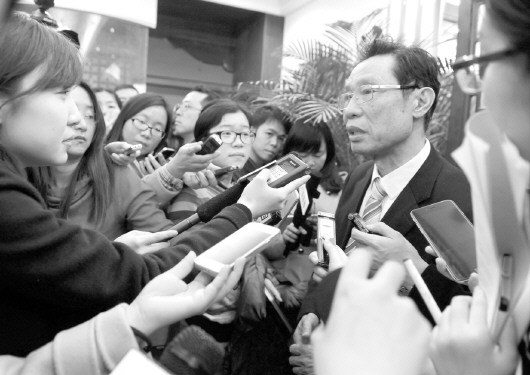 5日,人大代表钟南山接受记者采访。 本报特派记者 周青先 摄