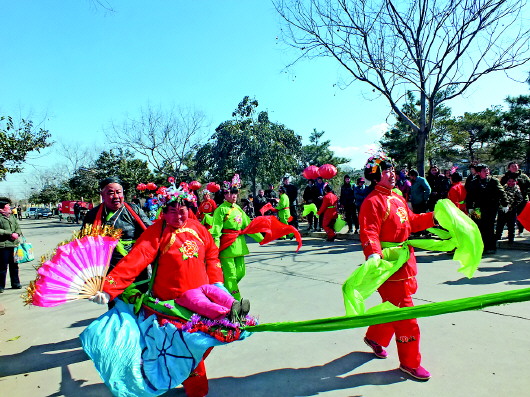 3日,孝里镇四街村的近百名群众演员,身着华丽盛装,纷纷亮出绝活,用丰富多彩的表演形式,为全村及周围村的父老乡亲献上最美好的祝愿。目前,孟道口、公庄等近40个村成立了文艺队,每年节庆期间进行巡回演出,弘扬民俗文化,受到村民的欢迎。 (通讯员 张娜)
