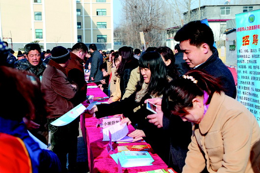 本报3月5日讯(记者 张帅) 春节之后,家政、建筑等行业市场都会面临着从业人员减少、雇主需求量增加的情况,这段时间是找工作的高峰期,是招聘求职的“黄金月”,对于那些想趁农闲时节外出打工的农民工来说更是如此。为了做好2015年农村富余劳动力转移就业工作,满足进城务工人员求职和企业招聘用人的需求,按照市人社局要求,3月2日,长清区人社局与团委、妇联等五部门联合举办了今年第一场“春风行动”招聘会。