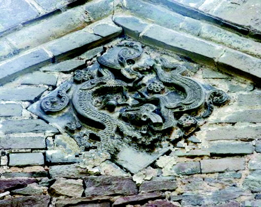▲玉皇庙墙体上的蟠龙雕刻十分精湛。