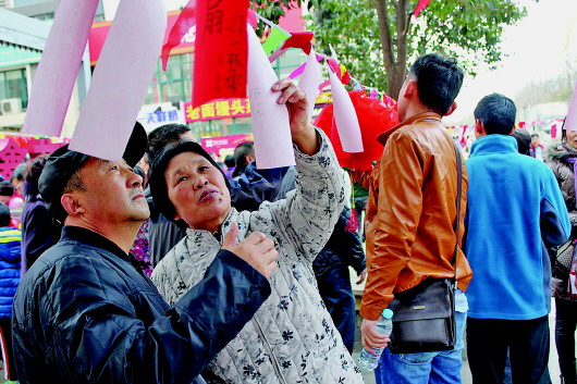 灯谜会吸引居民前来竞猜。