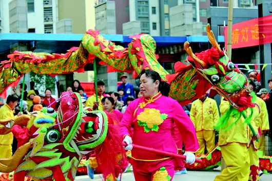 灯谜会现场的舞龙表演。 本报记者 修从涛 摄