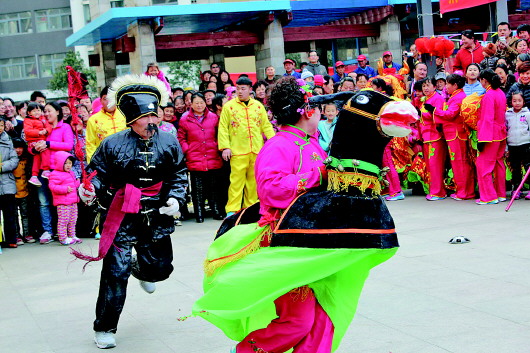 灯谜会现场的“老汉赶毛驴”表演。 本报记者 修从涛 摄