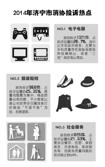 济宁市消协公布2014年投诉热点,电器、服装、服务类居前三