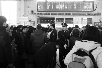 3月5日,武警德州支队的20余名武警战士一早匆匆吃过元宵后就到火车站进行执勤,他们多是第一次在离开家人的地方过元宵节。 本报记者 马志勇 摄