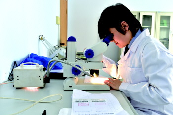 郭杰与张洁每天都是与化学物品的瓶瓶罐罐打交道,而陈世晓的工作是与各种放大镜,显微镜作伴。她从事刑事技术文件检验工作,鉴定对象为文件物证。文件检验的任务是揭示文件与案件、与当事人或嫌疑人的关系。主要包括笔迹鉴定、印章印文鉴定真伪、污染、损坏文件的辩读固定以及其他文件检验鉴定真伪。陈世晓出具的痕迹鉴定报告,成为不少案件的重要证据。痕迹鉴定,不仅仅要借助先进的仪器,更重要的是有一副好眼力,她的工作也被称为“火眼金睛”。