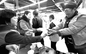 为让辛苦工作的环卫工人过一个温暖的元宵节,5日,东北村、红光、杏花村社区志愿者携手苏宁电器煮了1000多个汤圆,送给100多位环卫工人。