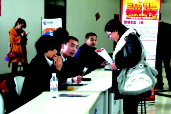 3月3日,在张店区的一个招聘会上,招聘岗位前,应聘者寥寥无几(大图)。为竞争一个岗位应聘者蜂拥而至(小图)。春节过后是招聘旺季,餐饮、技工等行业出现“用工荒”,而同时一些应聘者却“没活干”,为工作四处奔波。如何使招聘方与应聘者实现信息互通,需要政府、企业、个人共同探讨解决。