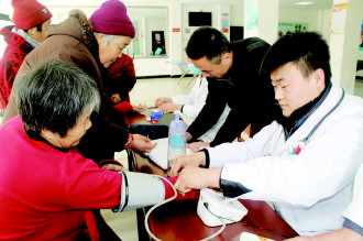 3月4日,薛城区“邻里守望 情暖薛城”社区志愿服务年活动正式启动。现场10支志愿者服务队近200名志愿者为社区居民提供了形式多样、内容丰富的服务项目,为传统的“学雷锋”活动增添了新的内涵。图为在临城街道鑫街广场开展爱心义诊和健康查体活动。   本报通讯员 徐子棋 张会 本报记者 袁鹏 摄影报道
