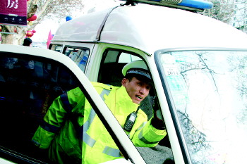 5日下午2点半,市中交警大队特勤中队的民警在太白楼路快活林东侧执勤时,发现一辆车速较快的“急救车”,该“急救车”闪着标志灯,正沿太白楼路自西向东行驶。“虽然这辆车上印有红色的十字,但却没有急救车的固有标志和所属医院名称,引起了执勤民警的怀疑。”特勤中队的副中队长张庆丰说,执勤民警随后将该车拦截。靠边停下后,急救车驾驶员称车内有病人,需要赶时间,但民警透过车窗看到车后并没有病人。