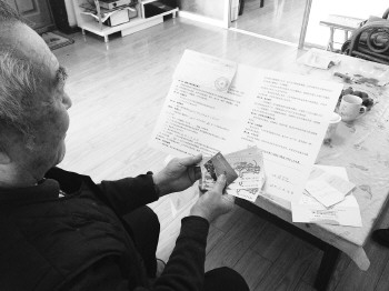 张先生从2012年5月份签订租赁合同以后,每隔半年就会带着“菜金券”到该公司在潍坊的驻点换取1400元现金。从老人提供的收据上看到他共取过三次,最后一次为2013年11月份。“去年5月份去领,发现公司换了地方,去新地方找,结果也没能领到钱”。2014年5月份,张先生按照原来双方的约定来到公司位于东风街一处写字楼的办事处,发现公司换地方了,拨打电话联系到公司新地址,找过去却被通知公司资金紧张,暂缓“菜金券”的兑换,等资金充裕之后会进行通知。