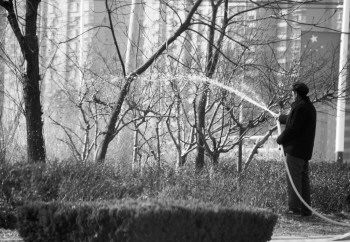 为了让植物在春天里更好地生长,近日,市区多处都能看到工作人员对绿化带灌溉的身影。 本报记者 王小会 摄