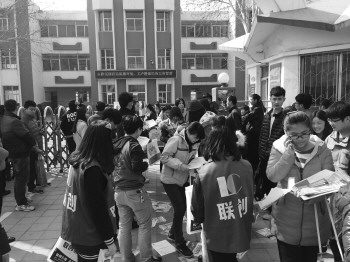 3月15日,中小学教师资格证考试开考。中午11时,在德州市北园小学考点,考生刚刚走出考场就被辅导学校工作人员围堵起来。 本报记者 张磊 摄