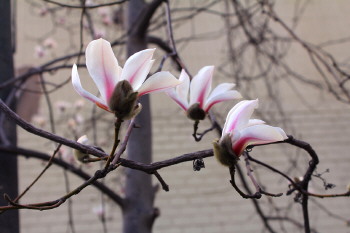 15日,徐州路77号院内玉兰花已早早开放。 吕璐 摄