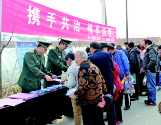针对“旧货换新”、“家电下乡”、“品牌促销”等类型的诈骗案高发,15日上午,初村边防派出所民警到高区廒上村大集开展宣传。