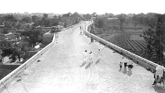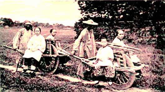 据记载,清朝末年,济南供人雇用乘坐的交通工具,常见的有大车和小车。当时,济南能行驶大车的宽阔马路少,人们习惯雇那些走街串巷的小车,小车的费用也低。因为小车只有一个车轮,推车的人扶着两个把手,不时地调整小车的重心。车轮左右的木架上坐人或装货,两边载重要对称。对于一位推小车的老手来说,可以在平地推五六百斤的重量。而遇到上坡或路途难行时,车前面需要有一位拴上绳子拉车的人相助,俗称拉套子的。