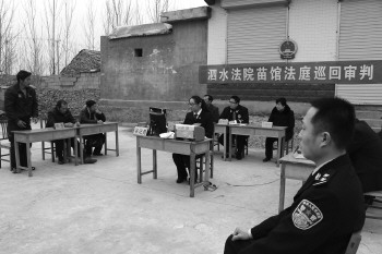本报2110110消息(记者 晋森 通讯员 屈庆东) 因赡养费的支付发生纠纷,泗水县星村镇某村的一位75岁老人将三个儿子告上法庭。因老人身患疾病不堪舟车劳顿,泗水法院的法官来到了位于山区的五道岭村现场开庭审理此案,并借此机会向村民进行赡养案件的普法宣传。