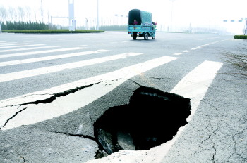 3月16日,崇德八大道与尚德十一路路口处的一片路面塌陷,露出一个1米见方的深坑,坑内数米宽的范围内已完全悬空,仅靠路面支撑。
