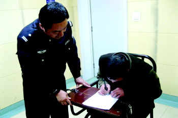 张某在讯问笔录上签字。 通讯员 华祥 摄