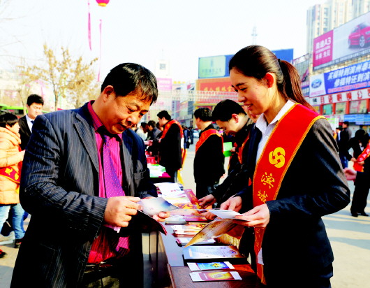 3月13日,滨城联社组织经过专业培训、考核合格的人员上街宣传金融消费者维权知识。主动向社会公众宣传“安全权、知悉权、选择权、公平交易权、受尊重权”等权利、争议解决方式、投诉渠道及风险责任意识和金融知识。期间共发放宣传材料2000余份,现场解答各类相关问题200余人次。图为宣传人员进行讲解。 (黎汝冰)