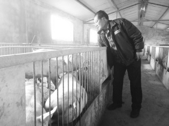 养殖户刘堪瑞望着存栏的猪很是无奈。 本报记者 孙越 摄