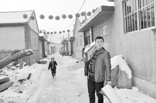 积满深雪的村路上,爸爸扛着大米艰难前行,儿子小跑紧随跟在后面。当这张照片在义工群里火起来时,陈志展并没有什么特别的感受。曾因家庭变故险些辍学,深知贫困的滋味,大学期间陈志展就陆续通过银行为贫困家庭和个人小额汇款。
