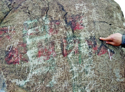 ◥在济南北部的华山景区,因自然风化和游客乱涂乱画,已有400多年历史的多块石刻破坏严重,亟需保护,石刻背后的文化价值也亟需挖掘。 本报记者 蒋龙龙 摄