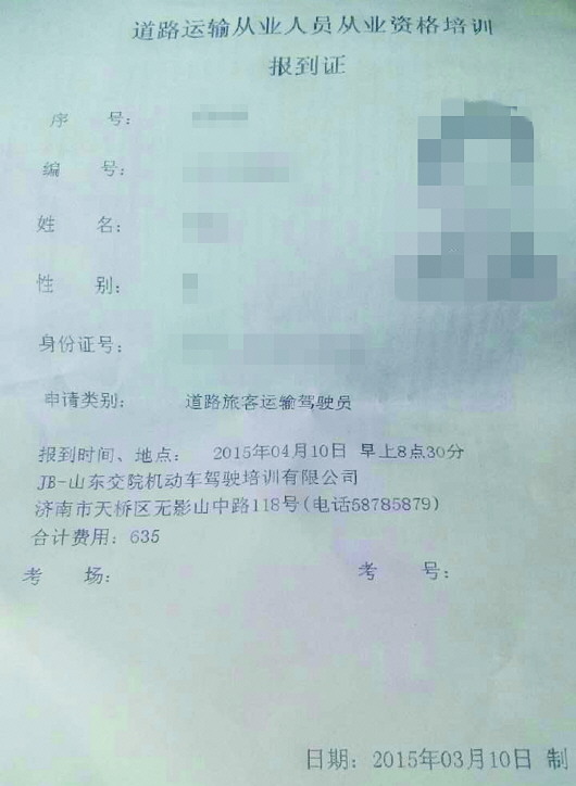 据了解,济南市目前有6家这样的客货运培训机构,市区的主要在山东交院,长清、章丘等地各自有培训机构。记者多次拨打报到证上山东交院方面的电话,但始终无法接通。