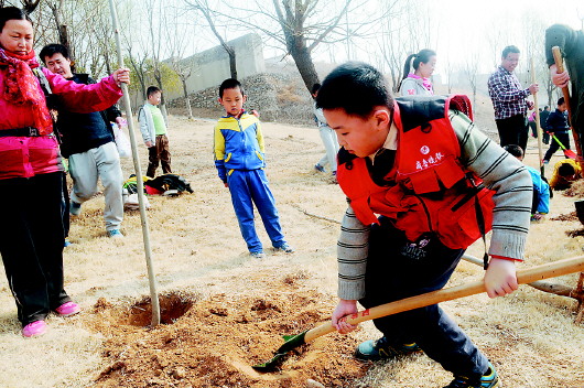 上周末,本报小记者团及其他市民共近千人来到园博园景区,种下一片白蜡树。 本报记者 戴伟 摄