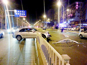 16日深夜,一辆奔驰车在幸福路撞断护栏“骑”在石墩上,驾驶员弃车而去。民警接到路人报警到达现场后,发现车未熄火,空调和音响都开着,驾驶员手机也落在了车上。