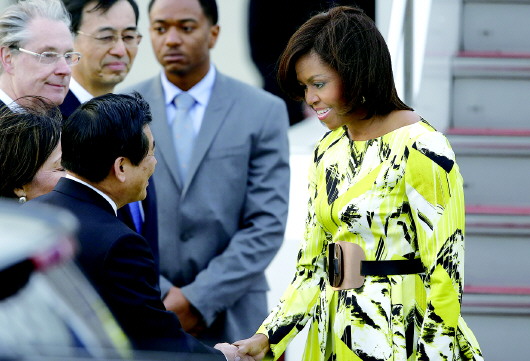 18日,美国“第一夫人”米歇尔到达日本羽田机场,开始对日本为期3天的访问。