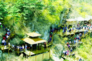 九如山是生态山水的典范,这是一片未受污染的世外桃源,远离尘嚣的境界,绝静人寰的空间,来到九如山才能更好地体验、感知和感悟大自然。快来吧,在九如山栈道上、溪水旁、瀑布下、峡谷中慢慢品味春天的旋律。 (露露)