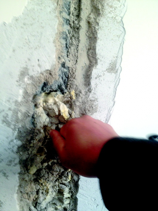 墙体裂缝中掺杂着“泡沫”,确实挺吓人。
