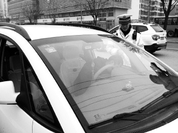 “你的车怎么没有贴环保贴?”10点35分,一辆在路口等红灯的银白色的轿车被交警查处。驾驶员停车后,民警对该车进行了查看。“我审车时没发什么环保贴啊?”面对交警询问,驾驶员一脸迷茫。他称,自己的车开了4年,每年都按时审车,但却不知车上除了年检贴外还要贴环保贴。