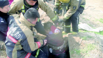 “井盖上的水泥板是碎的,这名农妇可能是挖野菜时不小心踩上井盖掉下去了。”现场指挥员刘队长说,当时该妇女位于距地面约8米深的位置,幸亏她用手抓着井边上的一些铁管才没有完全坠入井内,但是半个身子已经处在水下。