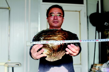 18日,胶州市民聂先生与朋友到胶州市山洲水库郊游,因为天气较好,爱好冬泳的聂先生忍不住下水游了起来,突然发现水库边上有河蚌的踪迹,经过“追踪”,聂先生找到了两只长达30cm的河蚌,据估计,这么大的河蚌最少生长了10年,聂先生打算将两只河蚌养在家里。