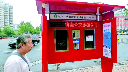 经十路边建起的公交旅游咨询便民亭兼具旅游咨询、公用电话、手机充电、上网等功能(资料片)。 本报记者 周青先 摄