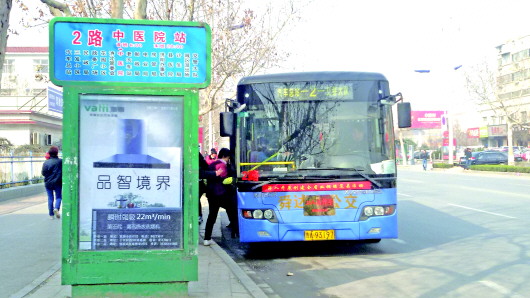 市民正在乘坐2路公交。 本报记者 张健 摄