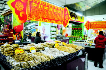 二月二“龙抬头”临近,19日,多家超市各式各样的炒豆被摆在显著的位置,供市民选购。