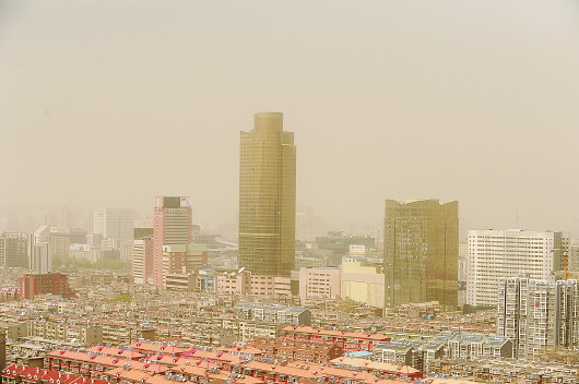 22日,今春最严重的沙尘袭击济南,中午12点左右,市区一片昏黄。