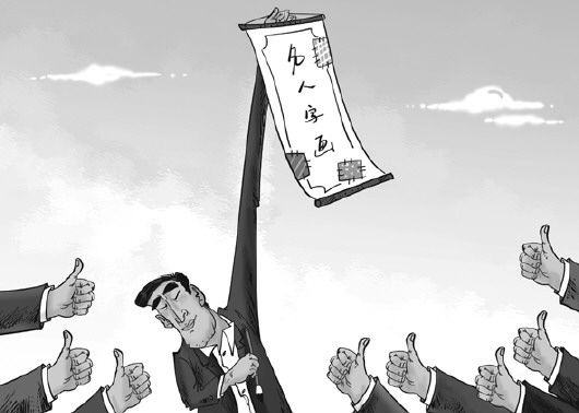 我居住的小区里的保安有一个是“酒鬼”,喝醉便昏昏然认不得自己,狂呼小叫说自己是玉皇大帝的女婿。能让人昏昏然认不清自己的除了酒精,还有名声。有的人名声一大,也会昏昏然误以为自己身上的一切包括“书法”也会“水涨船高”。这当然完全是误解,坏字就是坏字,断不可能因为是出于某位名人之手,就会变成好字。