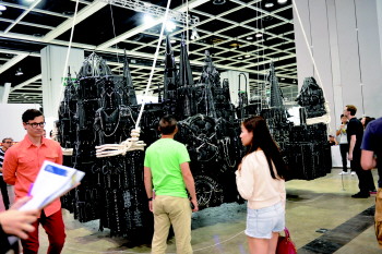 对参展的画廊来说,巴塞尔就是一个品牌,这种品牌是一种自我宣传,是有保证的成交量。虽然巴塞尔在香港只举办了三届,但是瑞士巴塞尔、巴塞尔迈阿密海滩艺术博览会已经将品牌的影响力拓展到全球。所以,香港巴塞尔艺博会的门槛很高,参展画廊必须掌握更多优质作品才有资格在巴塞尔艺博会上露面。强强联合机制下把这届的艺博会推向高潮。大牌画廊高古轩、白立方、佩斯画廊、香阁纳画廊,大未来林舍画廊等抢占显眼位置,力推代理艺术家。