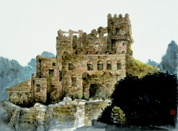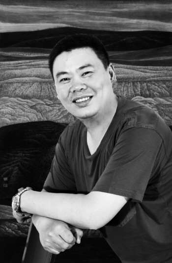 李圩是属于那种从天性出发,从骨子里酷爱画画的人,并且真正是具有绘画天赋和灵性的人。从他早些年画写实油画,又十分投入的琢磨观念绘画数年,后又转到传统山水画的研究和创作,他在繁忙工作之余,对自己酷爱的艺术倾注了大量的心血和时间。他曾考到中央美术学院著名山水画家贾又福教授门下的山水画进修班学习,又坚持不懈地自学,并广泛求教于师友。通过写生收集创作所需素材,借助“心”的思索、体验和感悟,来进行创作,将笔下的山山水水心灵化,通过内心关照自然、与无限的自然浑然融化,达到主观情思感受与熔铸的客观自然的统一。李圩的创作,以感情为依托,注重新形式的建立,通过对深入自然,对眼中之景的采集、提炼、概括,从写境到造境,从对景写生到对景创作,又苦心孤诣地进行创作,使其笔墨图式具有更强的视觉冲击力。画面静中求动的空间感表现出更广阔的时空推移感,透露出画家追求生命本真和宇宙本真的诉求。