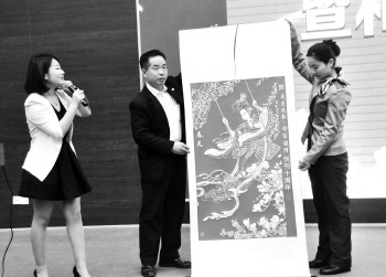 展示完作品,齐鲁晚报·今日运河主编宋国庆接过这份大礼,并给张跃广回赠了本报精心准备的礼物。